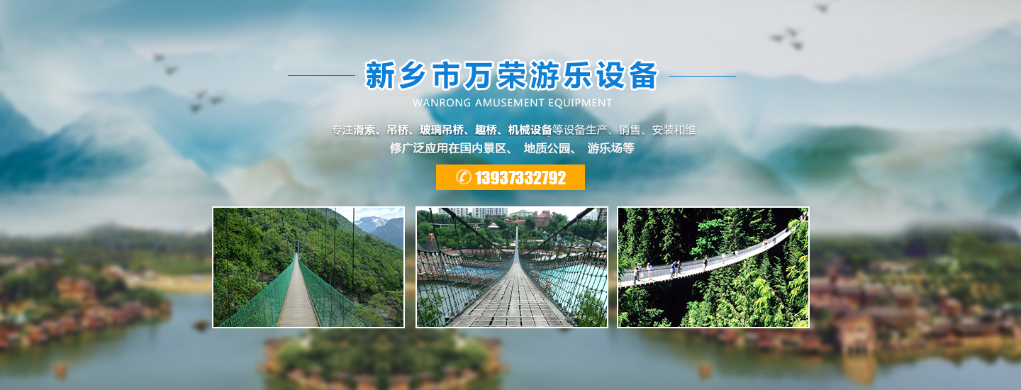 歡迎進(jìn)入新鄉(xiāng)市萬榮機(jī)械有限公司官網(wǎng)!關(guān)鍵詞:玻璃水滑廠家,吊橋廠家, 景區(qū)吊橋價(jià)格, 滑索廠家, 游樂吊橋廠家, 玻璃吊橋, 防腐木吊橋廠商 ,景區(qū)吊橋, 滑索設(shè)備, 吊橋生產(chǎn)廠家, 吊橋多少錢, 木板吊橋, 吊橋施工廠家